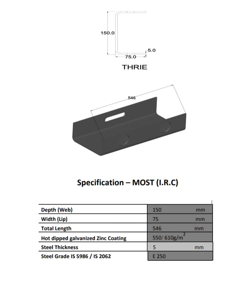 During collision the “w” beam absorbs maximum energy by flattering out & literally restraints the vehicle from turning over. “Thrie” Beam Crash Barrier also functions in the same way but absorbs much more impact. The design of the barrier ensures minimum damage to the vehicle and its occupants. With our in-house facilities and decade old industrial experience, we are able to provide best quality Crash Barriers.